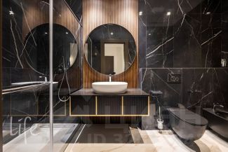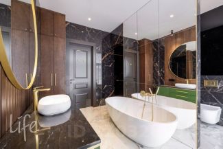 Экстерьерные и интерьерные решения: отделка стен выполнена высококачественными материалами: шпон, массив дерева и паркетная доска, мебель и освещение представлены известными итальянскими брендами, сантехника Antonio Lupi, фасады из натурального камня и термодревесины.