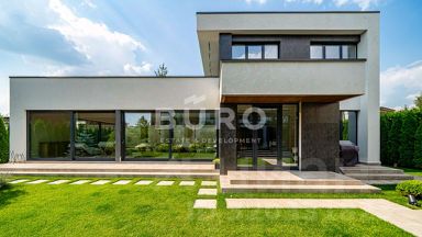 Шикарный загородный дом с 3-мя спальнями, общей площадью 396 м², представлен "под ключ" и расположен на видовом участке 11 соток.