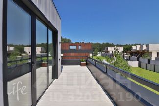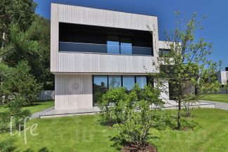 Конструктивные особенности: утепленная шведская плита для фундамента, монолитный каркас с газобетонными блоками и утеплителем для стен, монолитные перекрытия, фасад из натуральной лиственницы или термоясеня, плоская кровля с полимерной мембраной Logicroof и окна от компании Алютех.