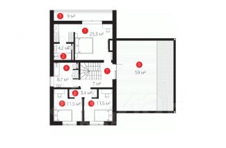 2 этаж: холл, мастер-спальня с гардеробной и с/у, балкон, с/у, две спальни, терраса.