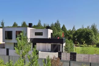 Лот 57968. Дом под ключ 427 кв.м. на участке 10.00 соток. Количество спален: 3. Коттеджный посёлок "Ильинские холмы", Новорижское шоссе, 40 км от МКАД. Прямоугольный участок с ухоженным газоном и декоративными деревьями. Удобная парковка для автомобиля. Коттеджный поселок "Ильинские Холмы" расположен на опушке леса, где природа и современность гармонично сочетаются. Дом выполнен в стиле минимализма с элементами Баухауса.