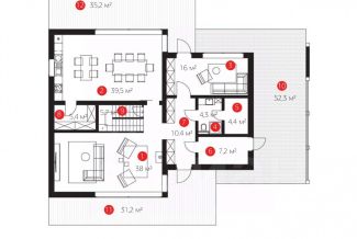 2 этаж: холл, мастер-спальня с гардеробной и с/у, балкон, две спальни, с/у, кабинет с выходом на террасу.