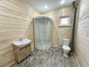 Построен из качественных материалов по каркасной технологии. На полу первого этажа полусухая бетонная стяжка.