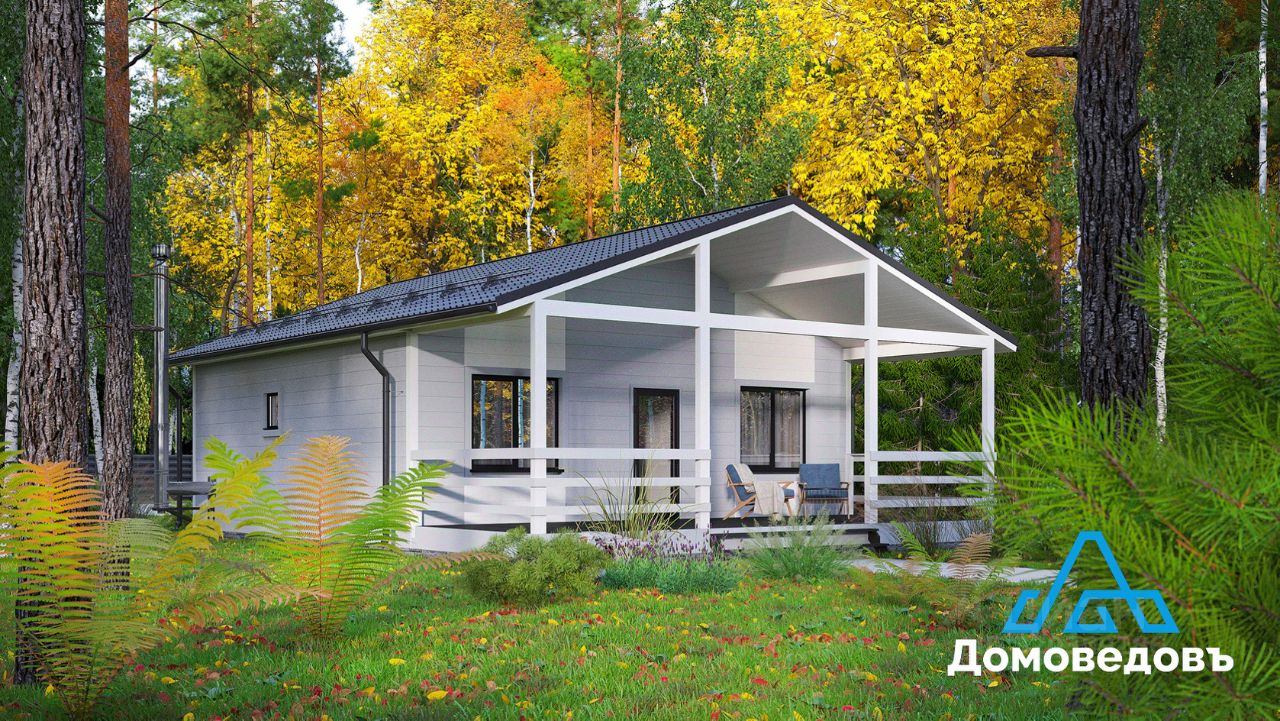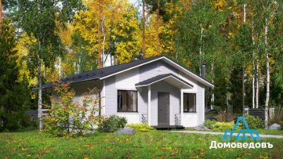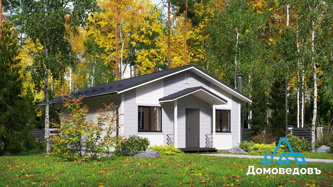 В доме кухня-гостиная площадью 22 кв. м с выходом на террасу 24 кв. м, две комнаты по 11 кв. м, санузел, холл и техническое помещение.