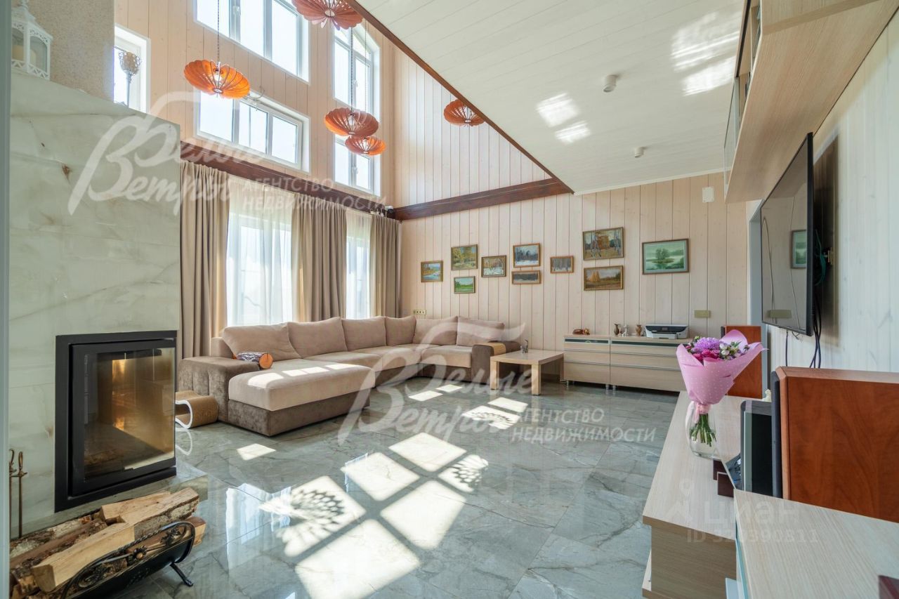 Описание внутренней отделки: интерьер выполнен с использованием современных материалов в светлой пастельной гамме. Стены покрашены, в санузлах - мозаика из натурального мрамора. Пол в гостиной и кухне отделан керамогранитом, в спальнях ламинатом, в санузлах плиткой. Теплый водяной пол во всем доме. Двери из массива сосны, подоконники из плитки и ПВХ. На второй этаж ведёт лестница на металлическом каркасе, с боковой подсветкой и ступенями, отделанными дубом. В доме тщательно продуманная удобная схема расположения розеток и выключателей: точек много, в нужных местах, есть розетки usb для зарядки гаджетов.