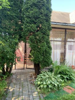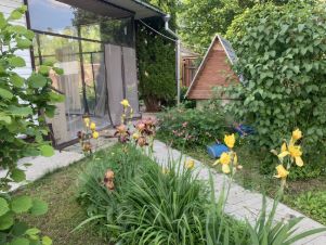 -В зоне сада и огорода расположена теплица, фруктовые деревья (яблони, груша, сливы, вишня), кустарники ягодные (разные сорта голубики, крыжовника, смородины, жимолости, малины), много клубники традиционной и ремонтантной, множество декоративных кустарников и многолетних цветов;