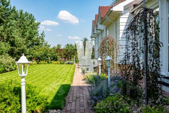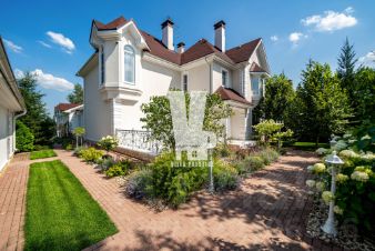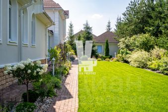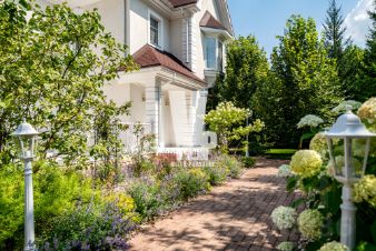 -с ландшафтным дизайном и автополивом (дорогие высокие деревья, цветы, Фруктовые деревья и ягодные кустарники), освещение по всему участку, полностью приватная территория (соседей не видно ).