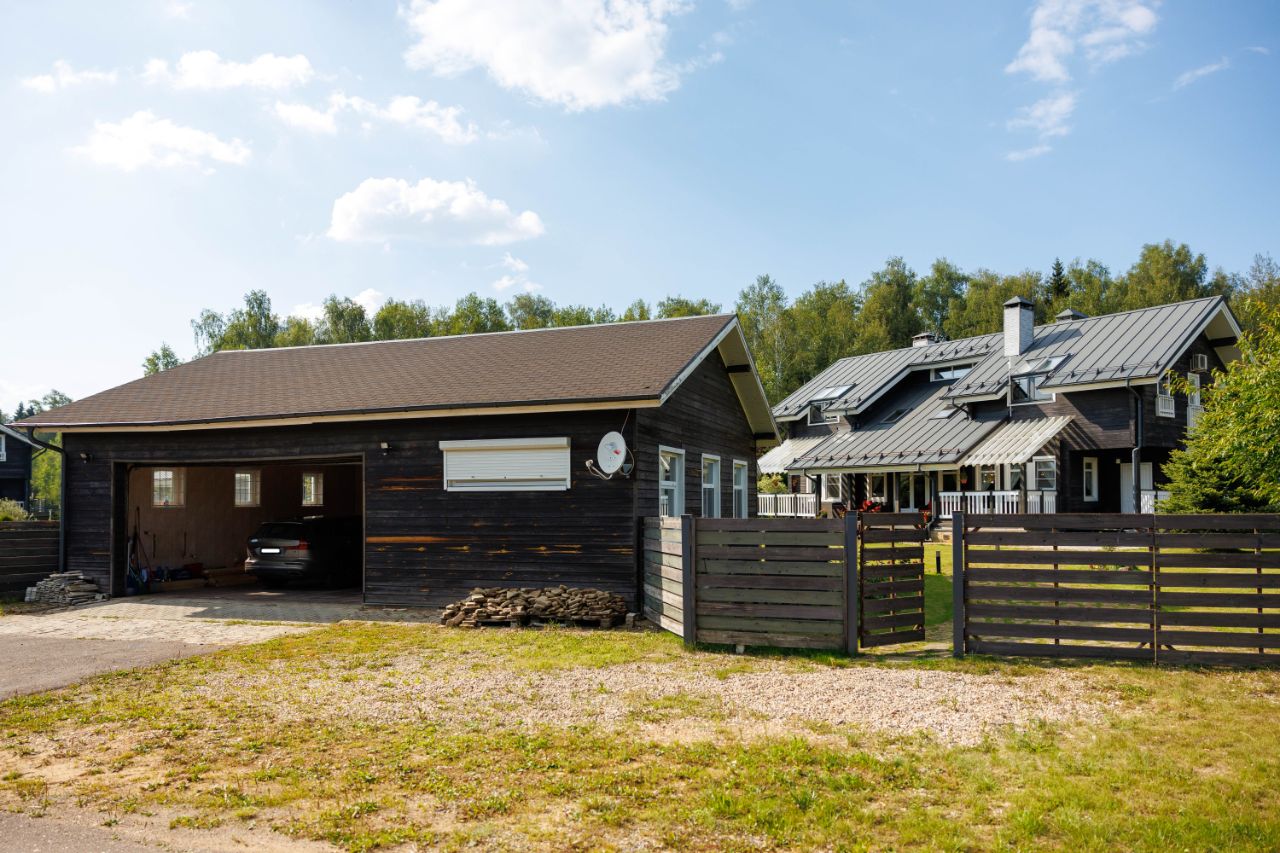 Участок 22 сотки со своим выходом в лес. В отдельном здании - большой отапливаемый гараж на две машины и гостевой домик.