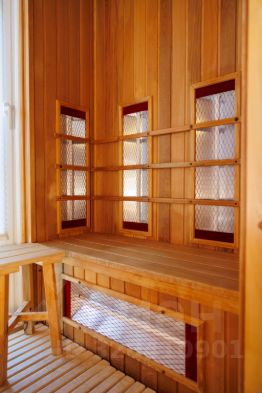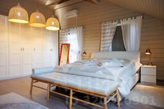 Правое крыло второго этажа занимает большая мастер-спальня. Из нее - отдельный вход в просторную ванную комнату с душем и инфракрасной сауной. В левом крыле находятся две гостевые спальни. В холле второго этажа - еще один гостевой санузел.
