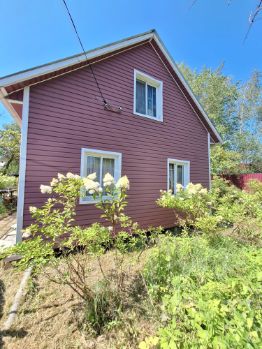 Дом каркасный, 1968 года постройки. Деревянные перекрытия. Фундамент: каменные опоры. Обшит сайдингом. Используется в весенне-осенний сезон. Есть уютная терраса.