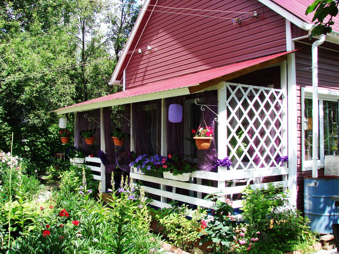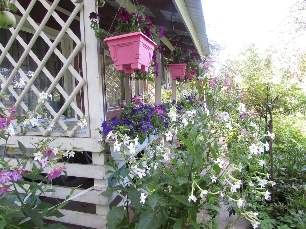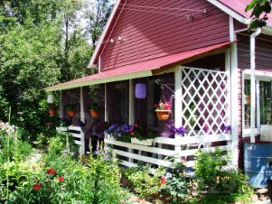 На участке растут плодовые деревья, высажены кусты малины, смородины, голубики... Много красивых цветов.