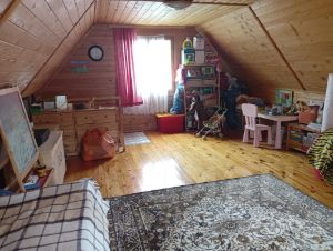 На втором этаже одна большая комната. Коммуникациями в доме: разведено электричество 15 кВт.
