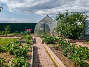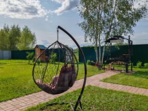 Участок ровный, ухоженный, с кустарниками, цветами и плодовыми деревьями. Есть теплица, зона барбекю, садовые качели с навесом, а также подвесное кресло для комфортного отдыха