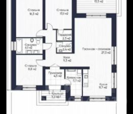 3 спальни по 13-14 метров+ кухня гостиная 39 метров.