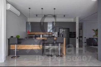 1 этаж: просторный и светлый холл, гардероб, кухня-столовая с панорамным остеклением и выходом на летнюю террасу (на кухне установлена новая мебель с функциональным островом от студии "Giulia Novars", а также современная бытовая техника Kuppersbusch и LIEBHERR, столешницы выполнены из камня и шпона), гостиная с дровяным камином, с/у, бойлерная, кладовая, теплый гараж на 2 м/м.