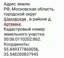 Усадьба в Подмосковье расположена близ деревни Артёмки городского округа Шаховская на западе Московской области, в 155 км от Москвы по Новорижскому шоссе. В прошлом родовое имение князей Шаховских, сегодня эта локация может стать идеальным местом для основания своей усадьбы!