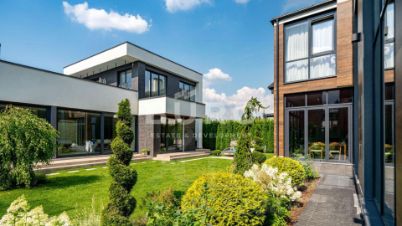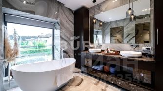 Шикарный загородный дом с 3-мя спальнями, общей площадью 396 м², представлен "под ключ" и расположен на видовом участке 11 соток.