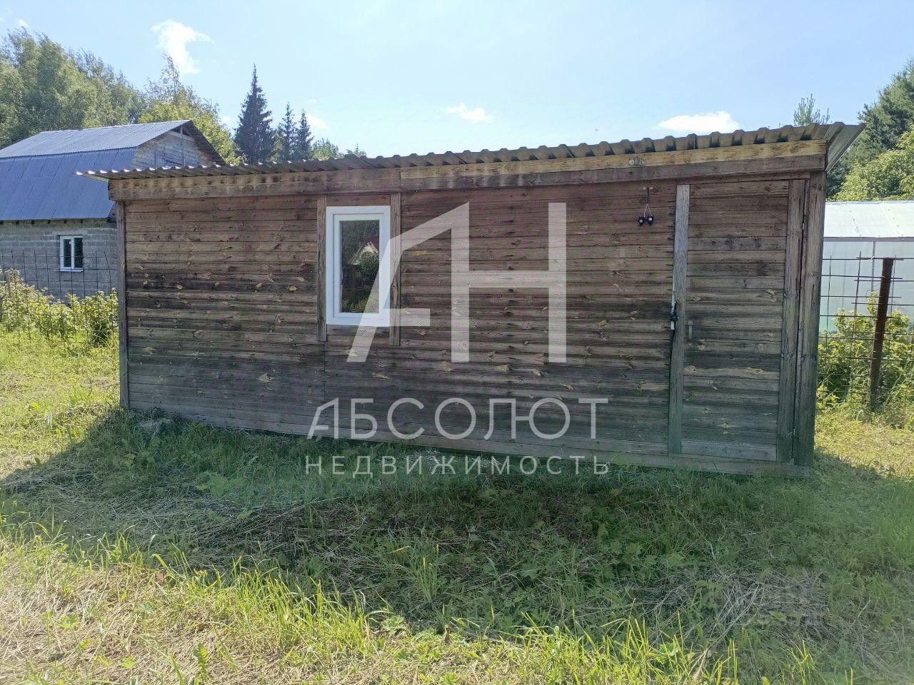 Установлена бытовка, которую можно использовать для хранения инструментов или оборудовать под дачный домик.