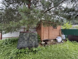 - Участок расположен в лесу, окружен деревьями, что создает ощущение уединения и покоя.