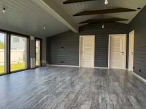 Дом выполнен полностью из леса камерной сушки , каркас обработан огне-биозащитой. Лаги пола каждые 40 см , что дает основанию пола повышенную жестокость . Оцинкованная сетка от грызунов под полом.