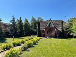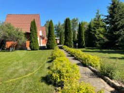 Площадь участка 15 соток. Категория земли ИЖС. Выполнен профессиональный ландшафтный дизайн, все дорожки вымощены камнем. На участке растут двадцатилетние деревья: красивые ели, березы, рябина, липы. Посажены различные кустарники и цветы. Участок зеленый и ухоженный, все лужайки регулярно подстригаются.