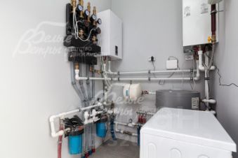 Инженерное обеспечение: установлены газовый котел Ferroli 34 кВт и резервный электрический котел, бойлер Ferroli, который подогревается от газового котла, и фильтр грубой очистки на воду. В каждой комнате функционирует естественная вентиляция, а в ванных комнатах принудительная..