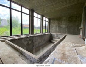 Установлено и подключено оборудование: насосная группа, фильтр, запорная арматура; бассейн полностью готов к эксплуатации, за исключением отделки плиткой;