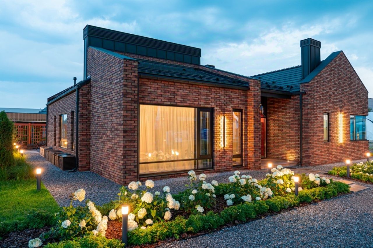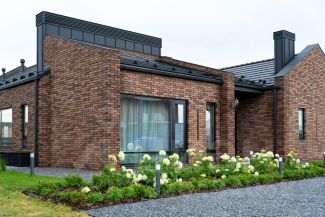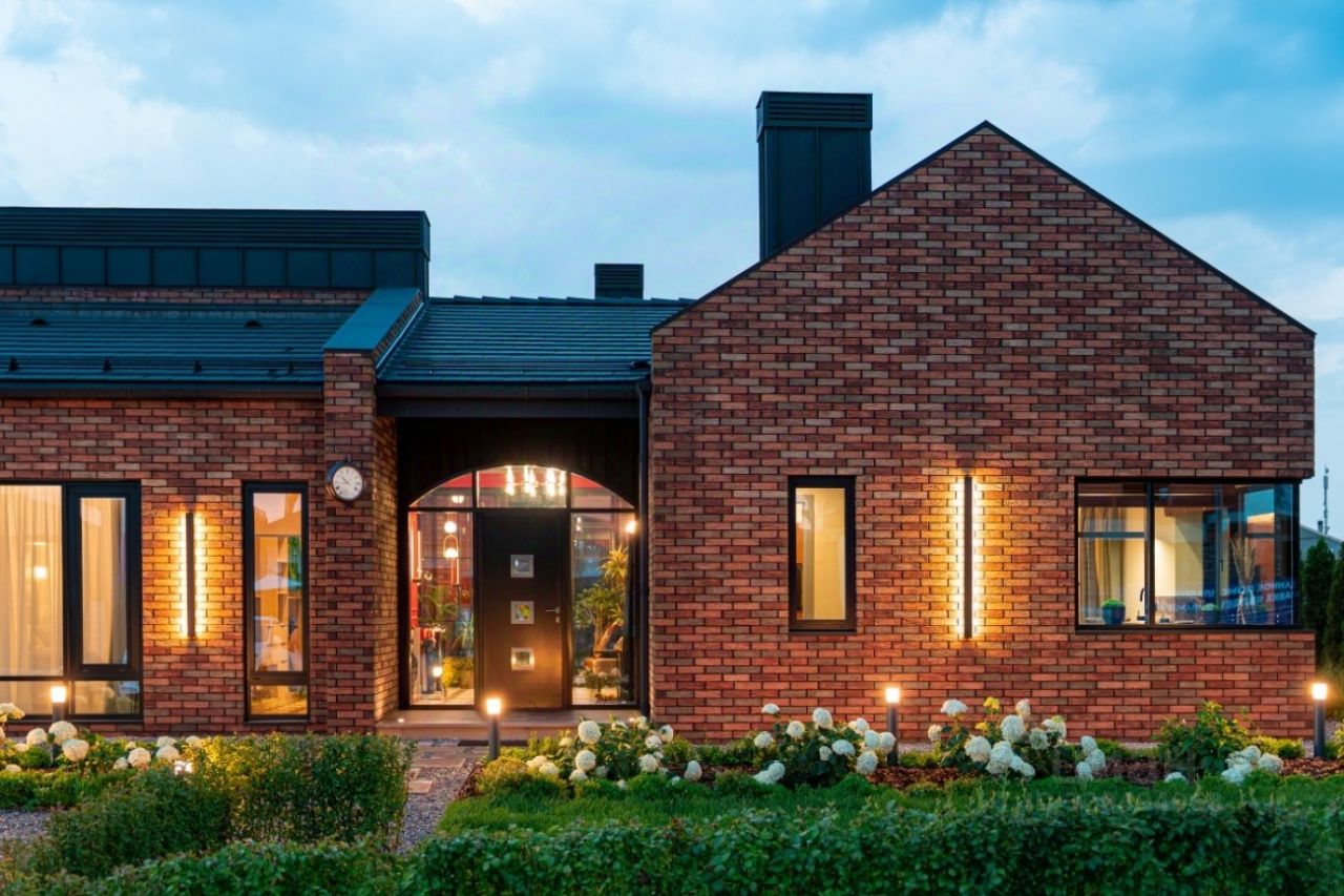 Фасад дома выполнен с использованием трех уникальных оттенков кирпича от Faber-Jar. Это придает зданию объем и визуальную привлекательность. Контрастная палитра позволяет каждому оттенку гармонично сочетаться, создавая эффект глубины. Центральным элементом дома служит сквозная часть, через стеклянные стены которой сразу виден задний двор. Эта же часть разделяет пространство на общественную и приватную зоны.