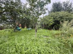 Дом и баня расположены в дальнем конца участка, что, при необходимости, позволит удобно расположить на участке и построить новый дом.