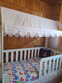На первом этаже расположены кухня, коридор, туалет, гостинная с дровяным камином, две спальни. На втором этаже, вход на который по крепкой деревянной лестнице, гостинная, две спальни, туалет и открытая терраса под крышей. Пол на террасе бетонный. Все стены в доме обиты вагонкой. Входная дверь металлическая, межкомнатные двери деревянные со стеклом.