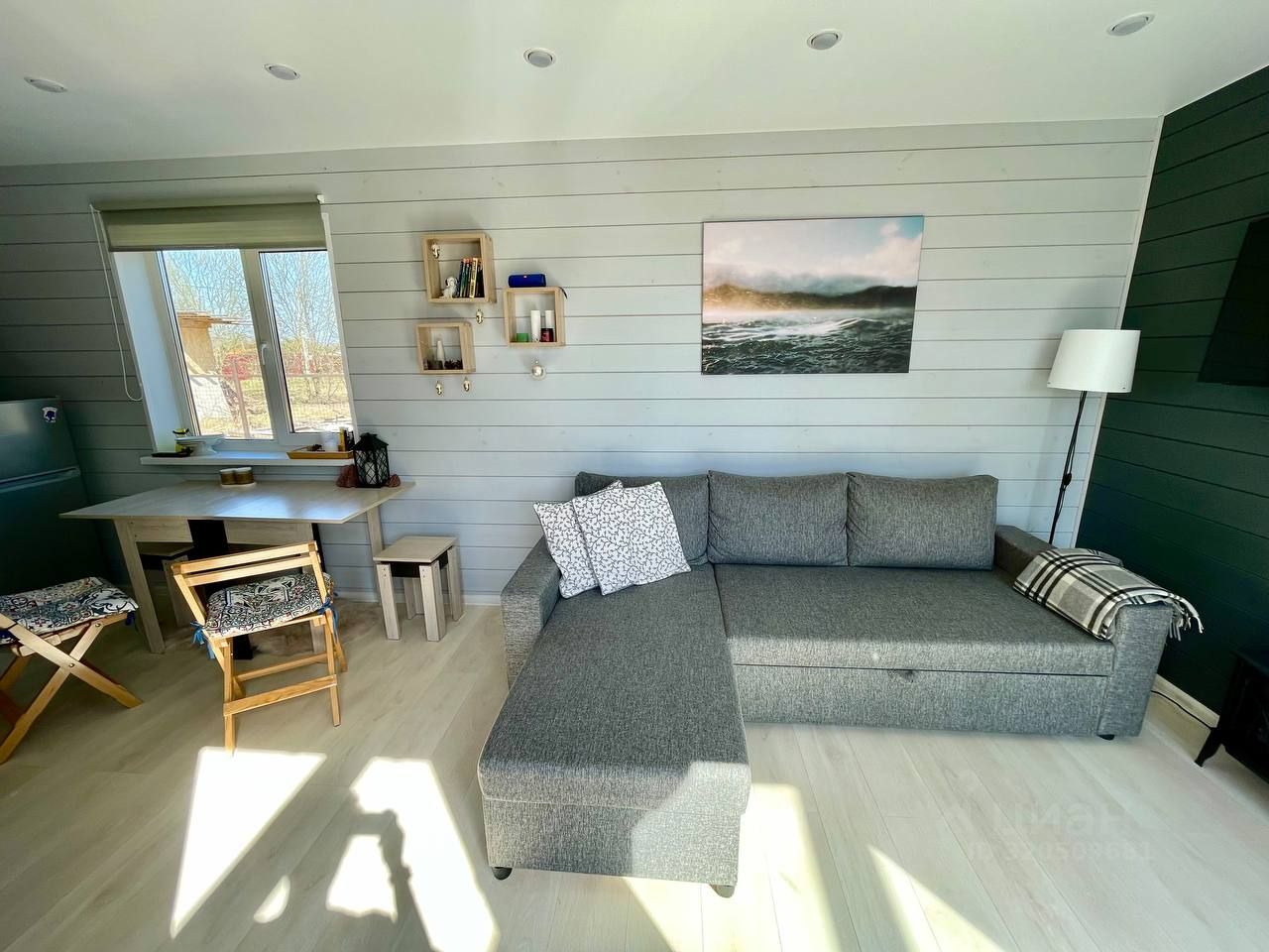 Дом: комнаты - 20 метров кухня-гостиная, 9 спальня и 9 гостевая/кабинет/детская. Сан/узел с душевой кабиной и теплым полом - 3 метра. Ламинат. Экологичная деревянная доска на стенах.