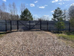 Участок: 10 соток, правильной формы, выровнен прошлой весной и выполнен наклон. После зимы не было ни одной застойной лужи. Забор штакетник с двух сторон, с двух сторон сетка. Въезд распашные ворота, калитка + калитка с другой стороны. Речная мелкая галька - костровая зона, дорожки вокруг дома, обсыпка на геотекстиль. Очень много свободного места - для загара, игры в бадминтон, бассейнов, парников или чего душа захочет.