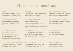 • Пожарная безопасность, двойное резервирование электропитания, водоснабжения и отопления (подробнее об инженерном наполнении см. на последнем фото)