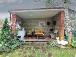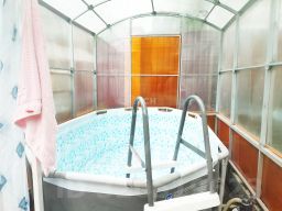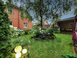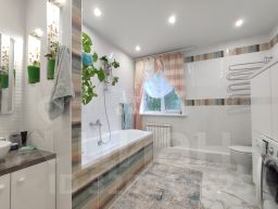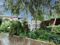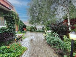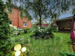 Участок 9 соток, ухоженный, на нём расположены беседка, капитальный шатёр, мангальная зона, теплицы, бассейн, много плодовых деревьев кустов по всему участку высажены цветочные клумбы и хвойные деревья что создаёт потрясающею красоту, на участке установлена дренажная система вода не застаивается. Имеется навес под авто, перед домом выложена тротуарная плитка которая придаёт чистоту солидность и завершённость, гармонично сочетаясь с архитектурой здания и окружающим ландшафтом.