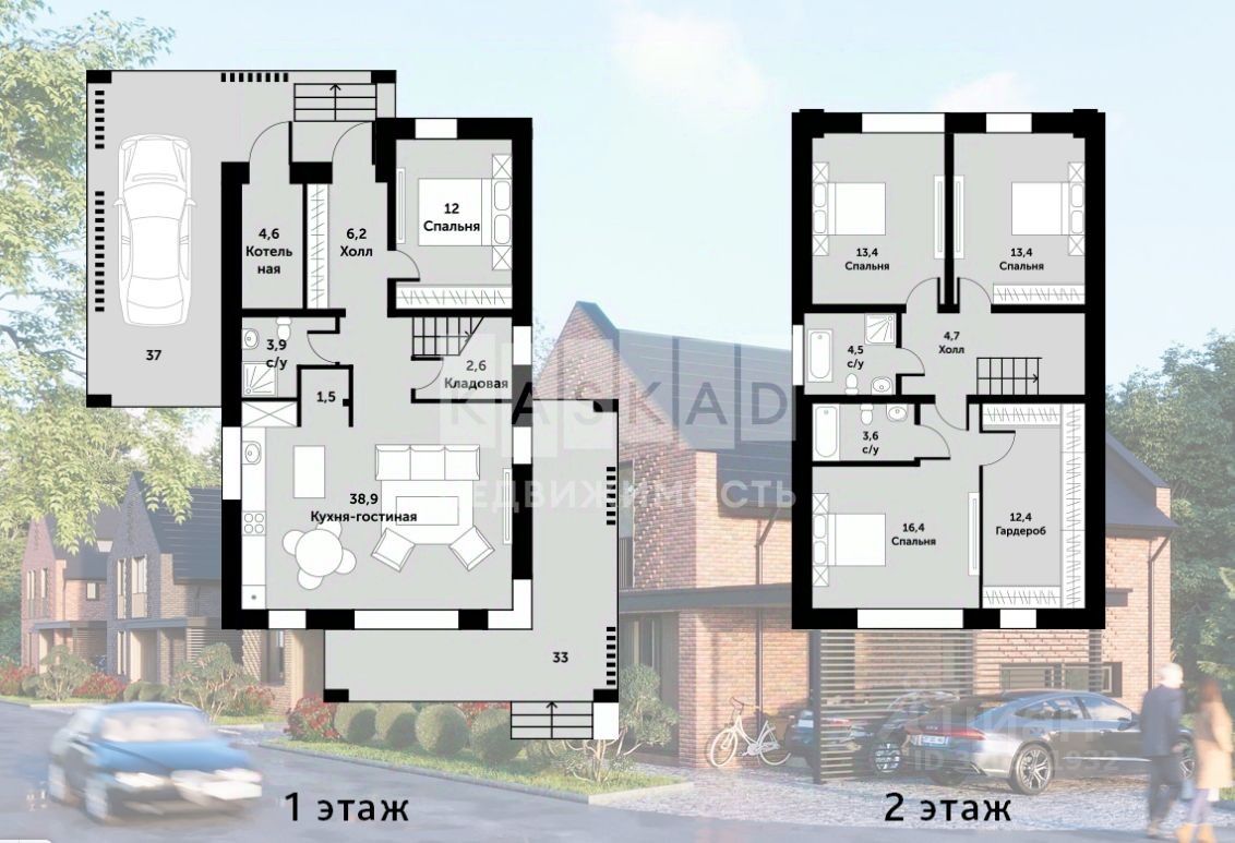2 этаж: 3 спальни, гардероб, 2 с/у