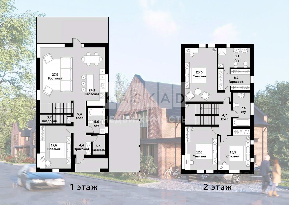 2 этаж: 3 спальни, гардероб, 2 с/у