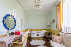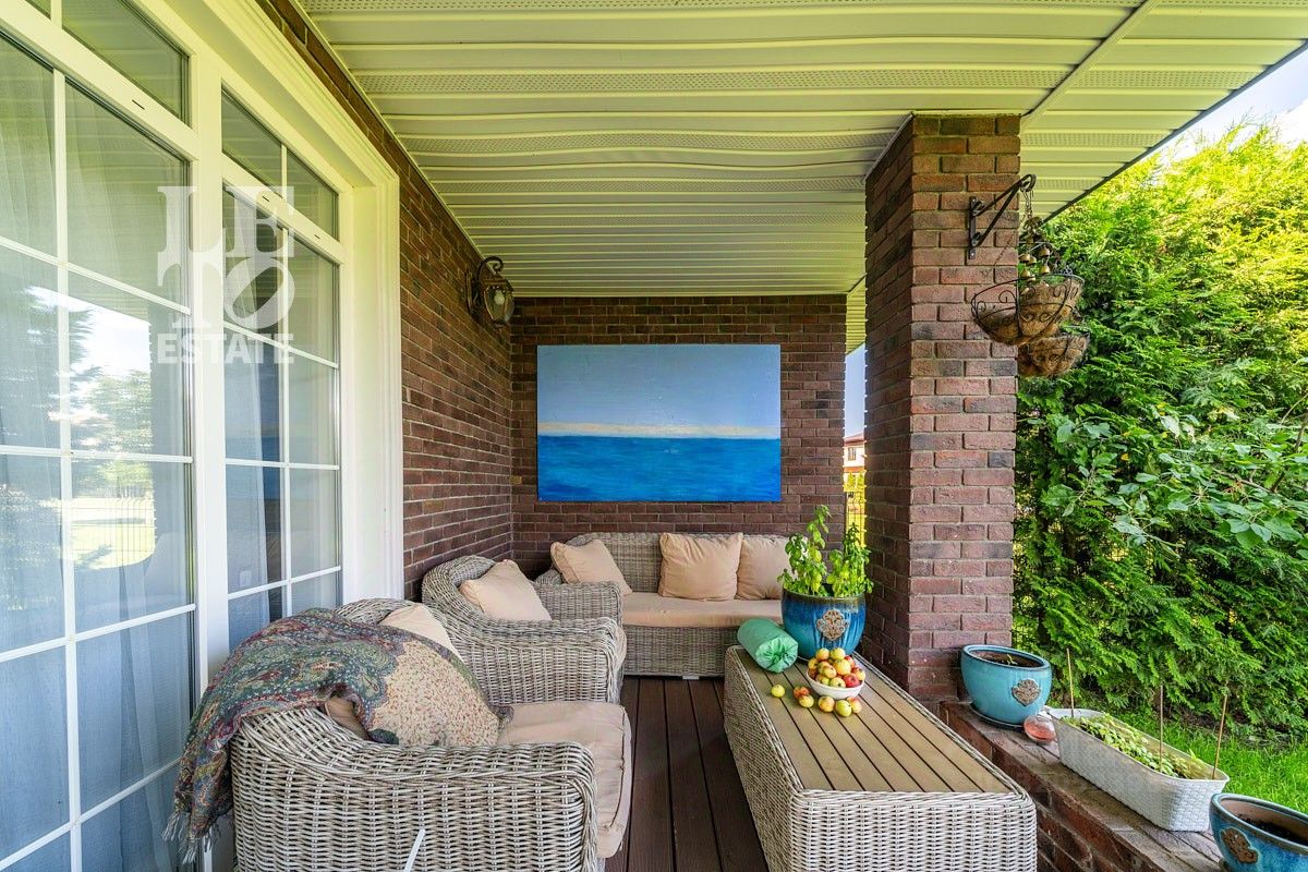 Внутри дома выполнена прекрасная отделка с использованием дорогих натуральных отделочных материалов. Мебель от известных итальянских и французских брендов. Освещение изготовлено из знаменитого высококачественного Муранского стекла. Лестница и элементы интерьера — массив дуба. На стенах композиции исполнены ручной росписью. Каждый элемент интерьера в доме был выбран с особым вниманием. Помещения спроектированы для комфортного проживания и быта. Есть все необходимое для постоянного проживания. Из гостиной выход на уютную террасу, где можно проводить время с семьей летними вечерами. Планировка продумана и реализована для комфортного проживания и быта. Дополнительно сделано помещение для персонала с отдельным входом. В дом заведены и разведены все центральные коммуникации: газоснабжение, электричество, водопровод и канализация.