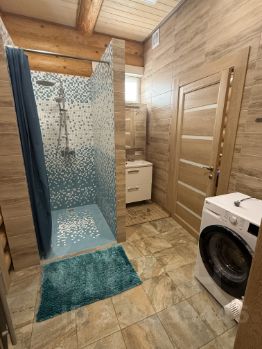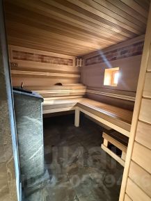 На участке также расположена баня, площадью 202 кв. м. в два этажа. Баня построена из сруба, диаметром 40 см на ленточном фундаменте. Коммуникации те же, что и в доме.