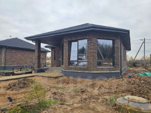 Фундамент классический, ленточный, заглубление на 1.5м., Бетон М300. Стены из Керамзитобетонных блоков, Фасад отделан облицовочным кирпичом.