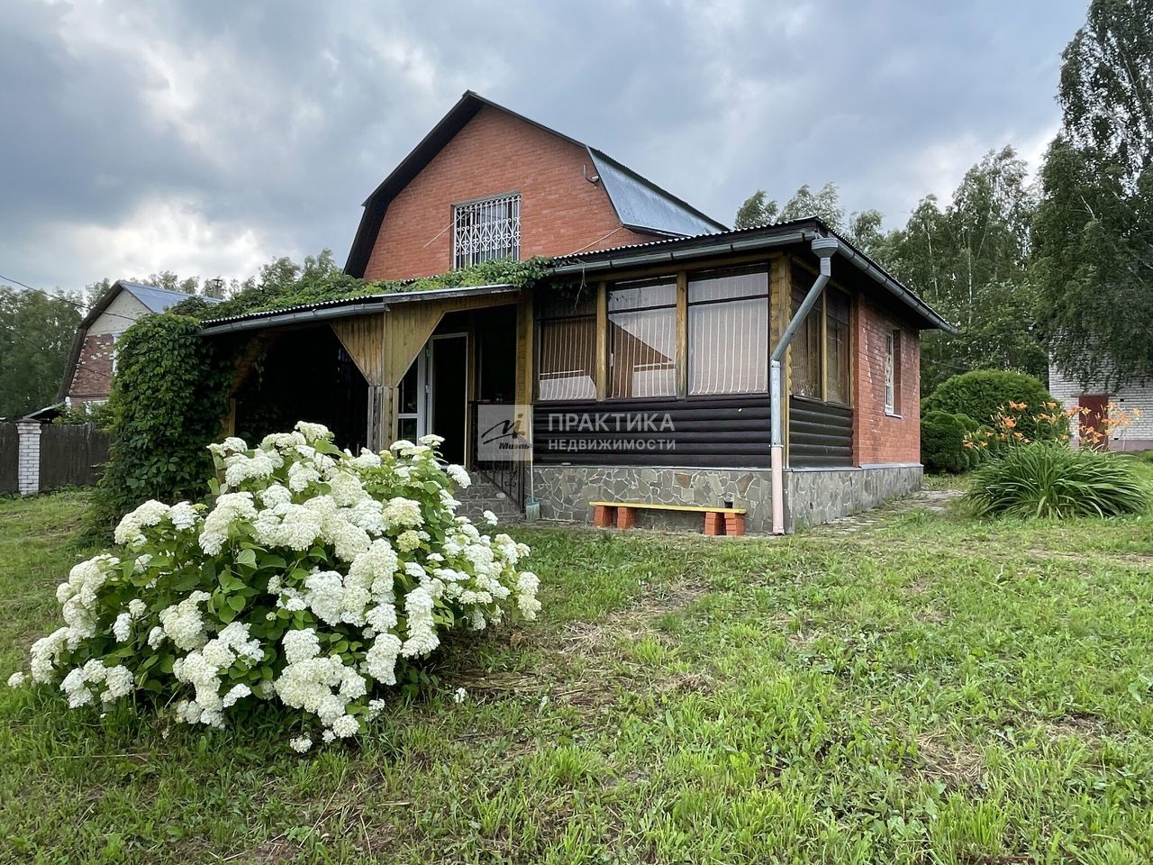 Материал стен - брус, отделка - облицовочный кирпич, внутри обшит вагонкой. Фундамент - монолитный , ленточный. Кровля -оцинкованный металлопрофиль. Прописка возможна.