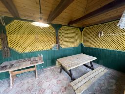 На участке отдельно стоящий двухровневый кирпичный гараж площадью 76 кв.м. на 2 автомобиля и подсобные помещения на первом этаже, беседка площадью 20 кв.м., построен большой вольер.