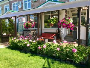 С кухни и гостинной есть отдельный выход на участок где расположен магал и зона отдыха.