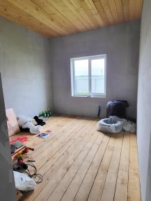 качественных стройматериалов, дом полностью готов под чистовую отделку. Построен из газобетонных блоков + утепление + пароизоляция + обшивка дерево под имитацию бруса 190 мм. Капитальный фундамент/монолит, кровля металлочерепица, качественные 2-х камерные стеклопакеты REHAU/70 профиль, выводы под батареи, тёплый пол везде кроме спален, добротная входная дверь с терморазрывом,