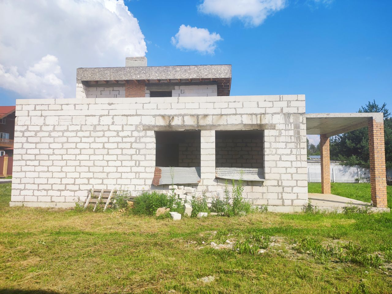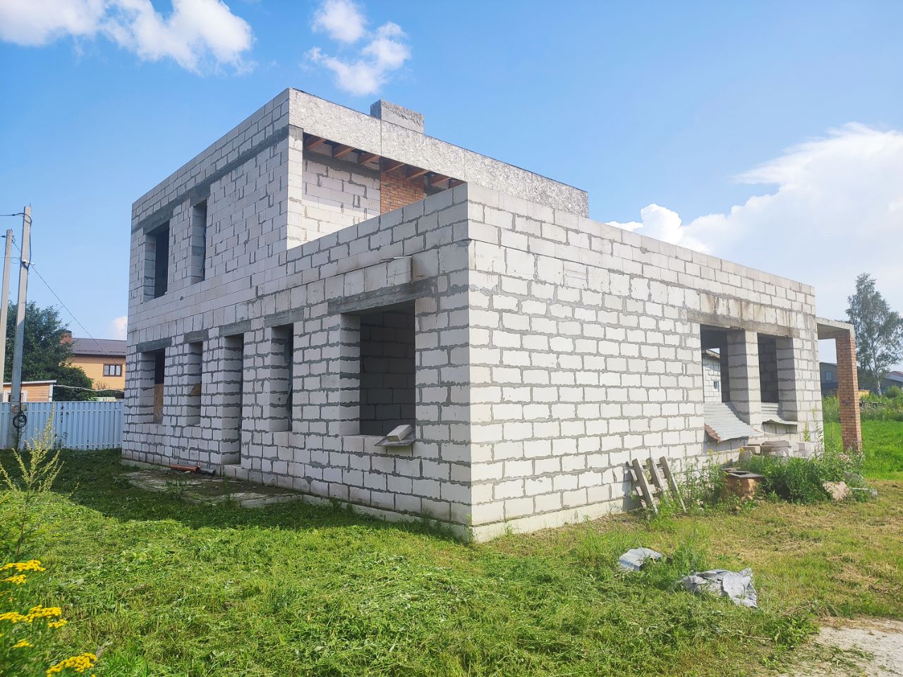 Круглогодичный подъезд. Дороги внутри поселка, а также по улице асфальтированы. Зимой производиться регулярная чистка дорог. На территории поселка два въезда, Южный для легковых автомобилей Северный для легковых и грузовых автомобилей. Управление воротами осуществляется собственниками круглосуточно путем мобильного приложения или звонка. Имеются входные калитки для пешего доступа, так же контролируются системой СКУД. Дом для постоянного проживания (прописка). Дом 2023 года постройки, без внешней и внутренней отделки. Фундамент-монолитная УШП плита 350мм усиленная по периметру и под все несущие стены балками 400х350мм. Стены выполнены из стенового блока BONOLIT толщиной 400мм. Над всеми окнами и дверными проемами залиты монолитные перемычки, выдержит любые нагрузки. Перекрытие между этажами выполнено монолитной ЖБ плитой толщиной 160мм с использованием арматуры 12мм в две сетки. Перекрытие усилено несущими балками 200х200мм. Для дополнительной гидроизоляции перекрытия в состав бетона была добавлена Гидроизоляционная проникающая смесь Пенетрон. Лестничный марш между этажами -монолитный. Просчитаны высота и ширина ступеней для очень комфортного подъёма и спуска, на одном дыхании. Так же в процессе монтажа лестничного марша были заложены провода под освещение каждой ступеньки, с возможностью установки элемента умного дома для подсветки. Дом правильно посажен на участок. Солнце весь день обогревает все основные помещения дома, а главное эксплуатируемую лоджию, на которой можно загорать в приватной обстановке. Площадь лоджии позволяет разместить на ней не только лежаки для загара, но и всевозможные элементы активного отдыха, такие как стол для настольного тенниса, мини гольф, или просто качели для приятного отдыха, не покидая территорию дома. Высота потолков 1-го этажа без отделки-3.5 м Первый этаж дома содержит: 3 изолированные спальни площадью-18.5 м, ванная-8м, сан/узел-3 м, кухня-гостиная 55.5 м, открытая терраса ( с возможностью остекления )-16.91 м, котельная-7 м, просторный холл-26.8. Второй этаж дома содержит: спальня-28.5 м, ванна 8.9 м, холл-5.75м.