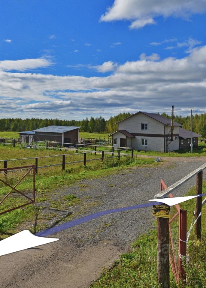 Участок примыкает к деревне, есть круглогодичный асфальтированный заезд. Зимой дорога в деревне регулярно чистится. На участке двухэтажный дом с конюшней, есть колодец и септик.