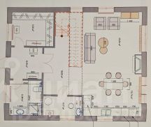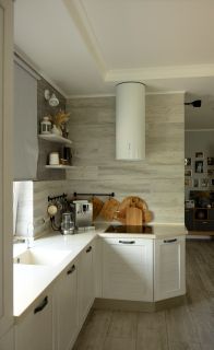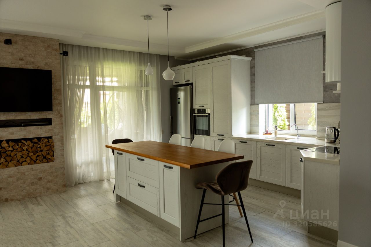 Уютная кухня гостиная с камином, встроенная итальянская кухня из массива дерева с премиальной техникой известных производителей. Ванная комната. Большая гардеробная комната, которую можно использовать как комнату для гостей. Хозяйственное помещение, где расположены: газовый котёл, накопительный водонагреватель, фильтр для очистки воды.