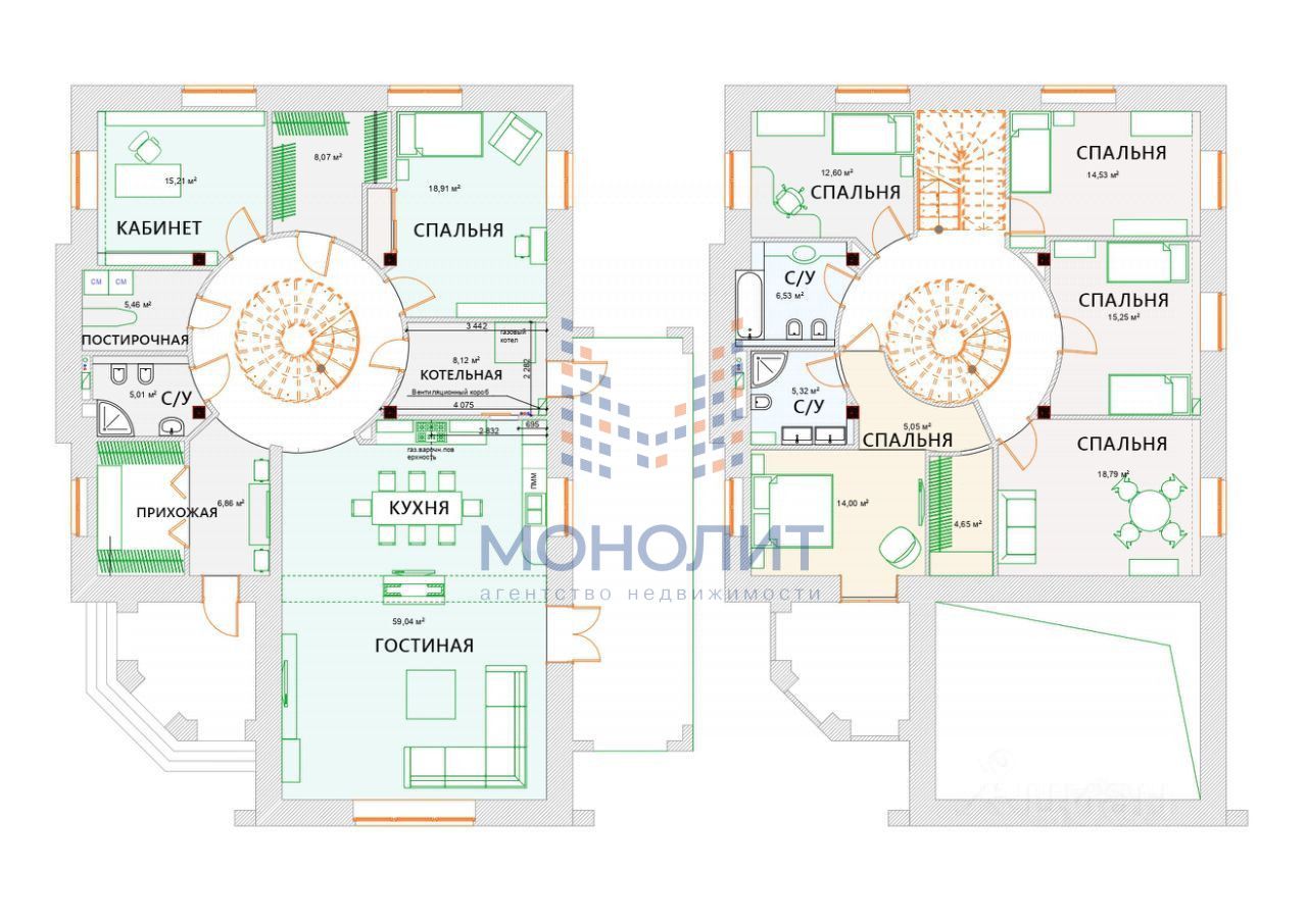 прихожей большая гардеробная, отдельно постирочная комната, кладовка, котельная (газовый котёл 60 кВт, водяной бойлер 300л). Третий этаж - открытое пространство, установлен биллиардный стол.