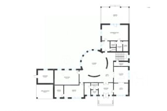 Первый этаж - пространство для семейного отдыха и приема гостей: большая прихожая с гардеробной, кухня, столовая, просторная гостиная со вторым светом, библиотека для работы и уединенного отдыха, мастер-спальня с собственной ванной комнатой, тренажерный зал с сауной и хамамом, гостевой санузел, навес на 4 автомобиля, большая терраса 62 кв.м.