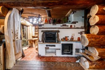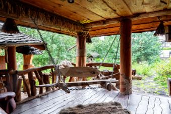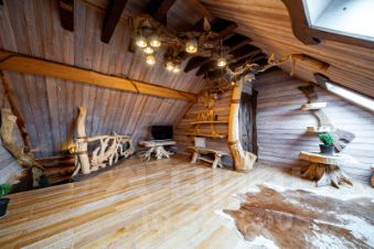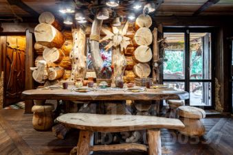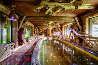 Дом построен из натурального дерева. В доме 2 этажа, подогреваемый бассейном (8,5 м) с противотоком, баня, русская печь, панорамные окна. На участке есть озеро с рыбками, мангальная зона, домик для детей, дом для персонала, терраса, бытовка, плодовые деревья и кустарники.