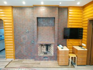Площадь дома 180 кв.м. Два этажа, плюс большой подвал. Четыре комнаты, большая гостиная с камином. Кухня с русской печкой.